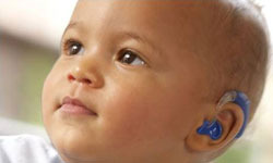 The hearing aid sits behind your child's ear and is held in place by an earmould in the ear. A microphone in the hearing aid picks up sounds around the child and makes them loud enough for your child to hear comfortably.